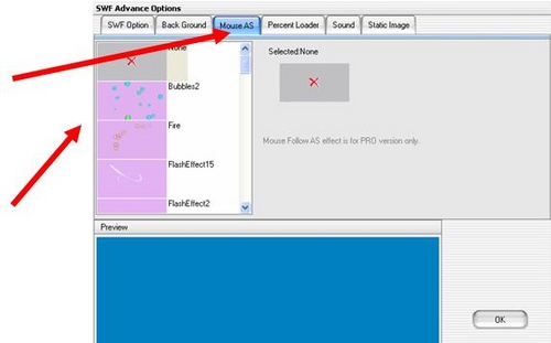 Back Ground: chọn Transparent để hiển thị chế độ trong suốt cho File Flash, chọn SolidColor là màu nền của file(mặc định là nên trắng), chọn Image Fill, bấm Browse và tìm đường dẫn đến file ảnh bạn muốn làm hình nền cho Banner để chèn ảnh nền. Tuỳ chỉnh xong bạn chuyển qua thẻ Mouse as để hiệu chỉnh hiệu ứng khi di chuột vào Banner.